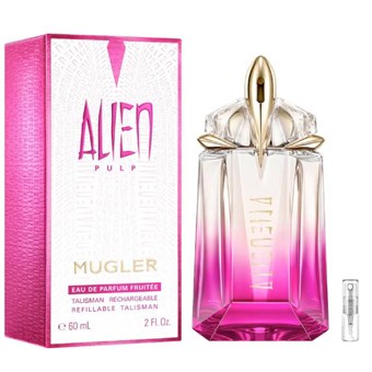 Homepage › Category › BRAND › Thierry Mugler Se alle parfume testerThierry Mugler Mugler Alien Pulp - Eau de Parfum - Perfume Sample - 2 ml Product number: TPS-6466- 2ML-F 1998 8,95 EUR Including VAT plus delivery costs Available - In 3-5 working days to you Choose size Choose variant Amount Add to Cart Earn Register Trustpilot Testrating forMugler Alien Pulp - Eau de Parfum - Perfume Sample - 2 mlSign in to rate the product 0 anmeldelser Produktet er endnu ikke anmeldt. Klik her for at skrive en anmeldelse. From 5€ shipping cost Guaranteed genuine Purchase by invoice (Klarna) free sample Betal nemt med Mobilepay Klimakompenserede forsendelsesmuligheder Vi sender hurtigt Fri fragt over 399 kr 1-3 dages leveringstid Bedste pris med prisgaranti 30 dages åbent køb & 1 års garanti på alle produkter Product Recommendations Product descriptionProduct ingredients Mugler Alien Pulp - Eau de Parfum - Perfume Sample Ingredient information for this perfume is currently unavailable. We're working to provide it shortly. Trustpilot @tryasample.eu